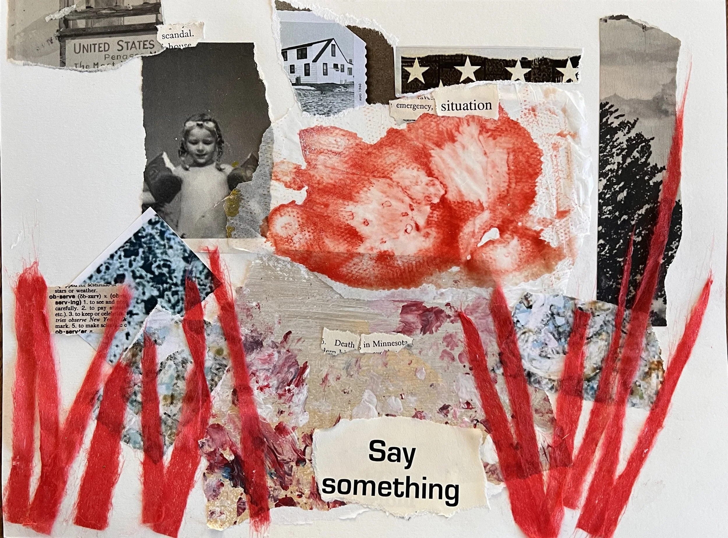 One unnecessary death in Minneapolis is too many. At the very least, Renee Good’s death at the hands of ICE mandates our attention. And mourning. I believe it also mandates our outrage. These were my thoughts when D. invited my dad and me to create collages last week. I brought my fury and sorrow to the materials at hand. At that time, I couldn’t imagine yet another person being gunned down. . . .